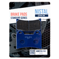 Klocki hamulcowe marki NISTAL to bezpieczny i trwały produkt posiadający doskonały stosunek jakości do ceny. Okładzina to organiczny materiał cierny wzbogacony dodatkami poprawiającymi hamowanie. Klocki z niebieskiej serii BLUE LINE dzięki zawartości 20% miedzi, zapewniają dobre odprowadzanie ciepła, nie szarpią i nie piszczą podczas hamowania. Zapewniają łagodne zużywanie się tarczy. Sprawdzą się również w cięższych motocyklach do rekreacyjnej jazdy. Wytwarzane zgodnie z certyfikatami: ISO 9001:2008, ISO 14001:2004, OHSAS 18001:2007.