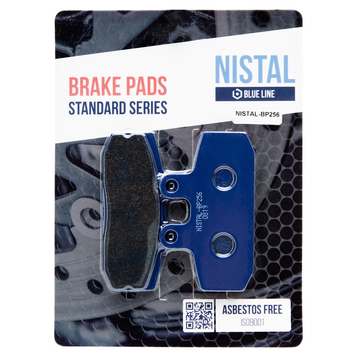 Klocki hamulcowe marki NISTAL to bezpieczny i trwały produkt posiadający doskonały stosunek jakości do ceny. Okładzina to organiczny materiał cierny wzbogacony dodatkami poprawiającymi hamowanie. Klocki z niebieskiej serii BLUE LINE dzięki zawartości 20% miedzi, zapewniają dobre odprowadzanie ciepła, nie szarpią i nie piszczą podczas hamowania. Zapewniają łagodne zużywanie się tarczy. Sprawdzą się również w cięższych motocyklach do rekreacyjnej jazdy. Wytwarzane zgodnie z certyfikatami: ISO 9001:2008, ISO 14001:2004, OHSAS 18001:2007.