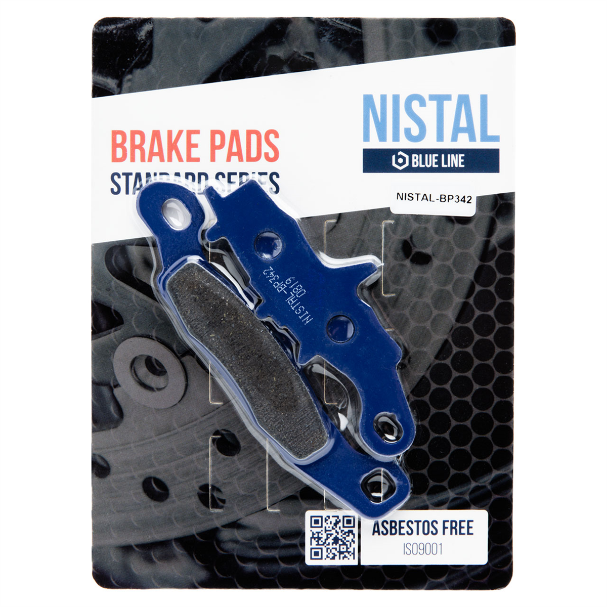 Klocki hamulcowe marki NISTAL to bezpieczny i trwały produkt posiadający doskonały stosunek jakości do ceny. Okładzina to organiczny materiał cierny wzbogacony dodatkami poprawiającymi hamowanie. Klocki z niebieskiej serii BLUE LINE dzięki zawartości 20% miedzi, zapewniają dobre odprowadzanie ciepła, nie szarpią i nie piszczą podczas hamowania. Zapewniają łagodne zużywanie się tarczy. Sprawdzą się również w cięższych motocyklach do rekreacyjnej jazdy. Wytwarzane zgodnie z certyfikatami: ISO 9001:2008, ISO 14001:2004, OHSAS 18001:2007.