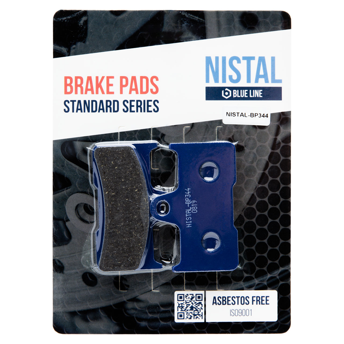 Klocki hamulcowe marki NISTAL to bezpieczny i trwały produkt posiadający doskonały stosunek jakości do ceny. Okładzina to organiczny materiał cierny wzbogacony dodatkami poprawiającymi hamowanie. Klocki z niebieskiej serii BLUE LINE dzięki zawartości 20% miedzi, zapewniają dobre odprowadzanie ciepła, nie szarpią i nie piszczą podczas hamowania. Zapewniają łagodne zużywanie się tarczy. Sprawdzą się również w cięższych motocyklach do rekreacyjnej jazdy. Wytwarzane zgodnie z certyfikatami: ISO 9001:2008, ISO 14001:2004, OHSAS 18001:2007.