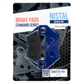 Klocki hamulcowe marki NISTAL to bezpieczny i trwały produkt posiadający doskonały stosunek jakości do ceny. Okładzina to organiczny materiał cierny wzbogacony dodatkami poprawiającymi hamowanie. Klocki z niebieskiej serii BLUE LINE dzięki zawartości 20% miedzi, zapewniają dobre odprowadzanie ciepła, nie szarpią i nie piszczą podczas hamowania. Zapewniają łagodne zużywanie się tarczy. Sprawdzą się również w cięższych motocyklach do rekreacyjnej jazdy. Wytwarzane zgodnie z certyfikatami: ISO 9001:2008, ISO 14001:2004, OHSAS 18001:2007.