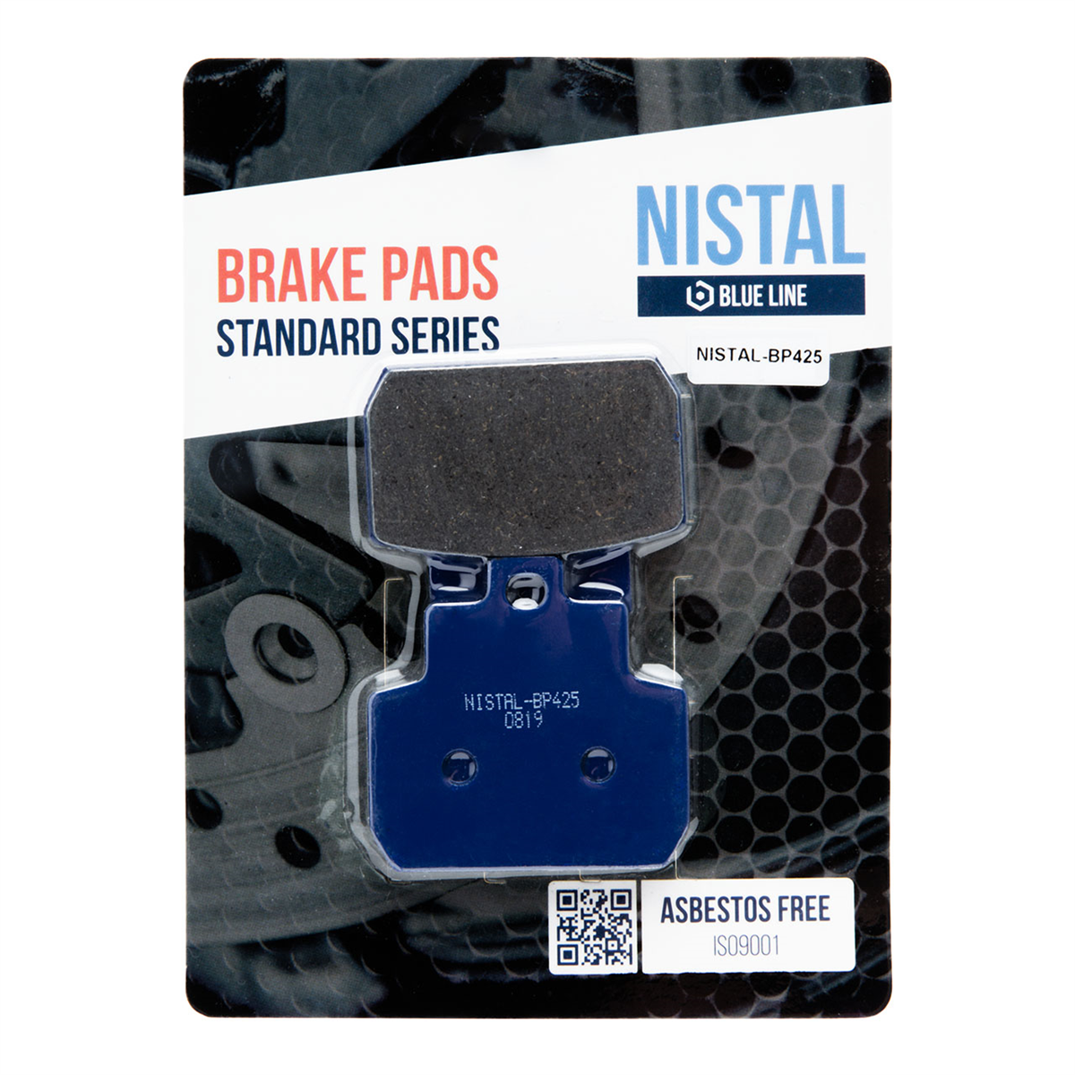 Klocki hamulcowe marki NISTAL to bezpieczny i trwały produkt posiadający doskonały stosunek jakości do ceny. Okładzina to organiczny materiał cierny wzbogacony dodatkami poprawiającymi hamowanie. Klocki z niebieskiej serii BLUE LINE dzięki zawartości 20% miedzi, zapewniają dobre odprowadzanie ciepła, nie szarpią i nie piszczą podczas hamowania. Zapewniają łagodne zużywanie się tarczy. Sprawdzą się również w cięższych motocyklach do rekreacyjnej jazdy. Wytwarzane zgodnie z certyfikatami: ISO 9001:2008, ISO 14001:2004, OHSAS 18001:2007.
