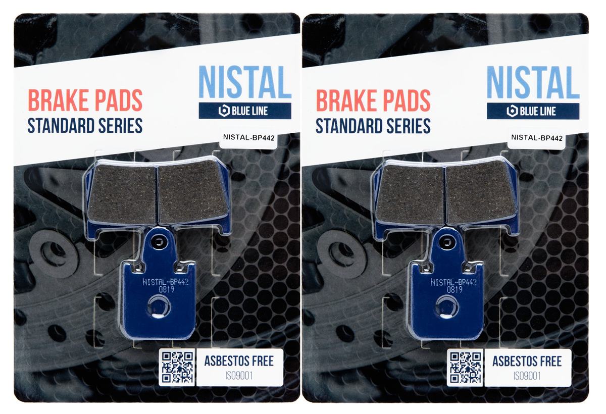 Klocki hamulcowe marki NISTAL to bezpieczny i trwały produkt posiadający doskonały stosunek jakości do ceny. Okładzina to organiczny materiał cierny wzbogacony dodatkami poprawiającymi hamowanie. Klocki z niebieskiej serii BLUE LINE dzięki zawartości 20% miedzi, zapewniają dobre odprowadzanie ciepła, nie szarpią i nie piszczą podczas hamowania. Zapewniają łagodne zużywanie się tarczy. Sprawdzą się również w cięższych motocyklach do rekreacyjnej jazdy. Wytwarzane zgodnie z certyfikatami: ISO 9001:2008, ISO 14001:2004, OHSAS 18001:2007.