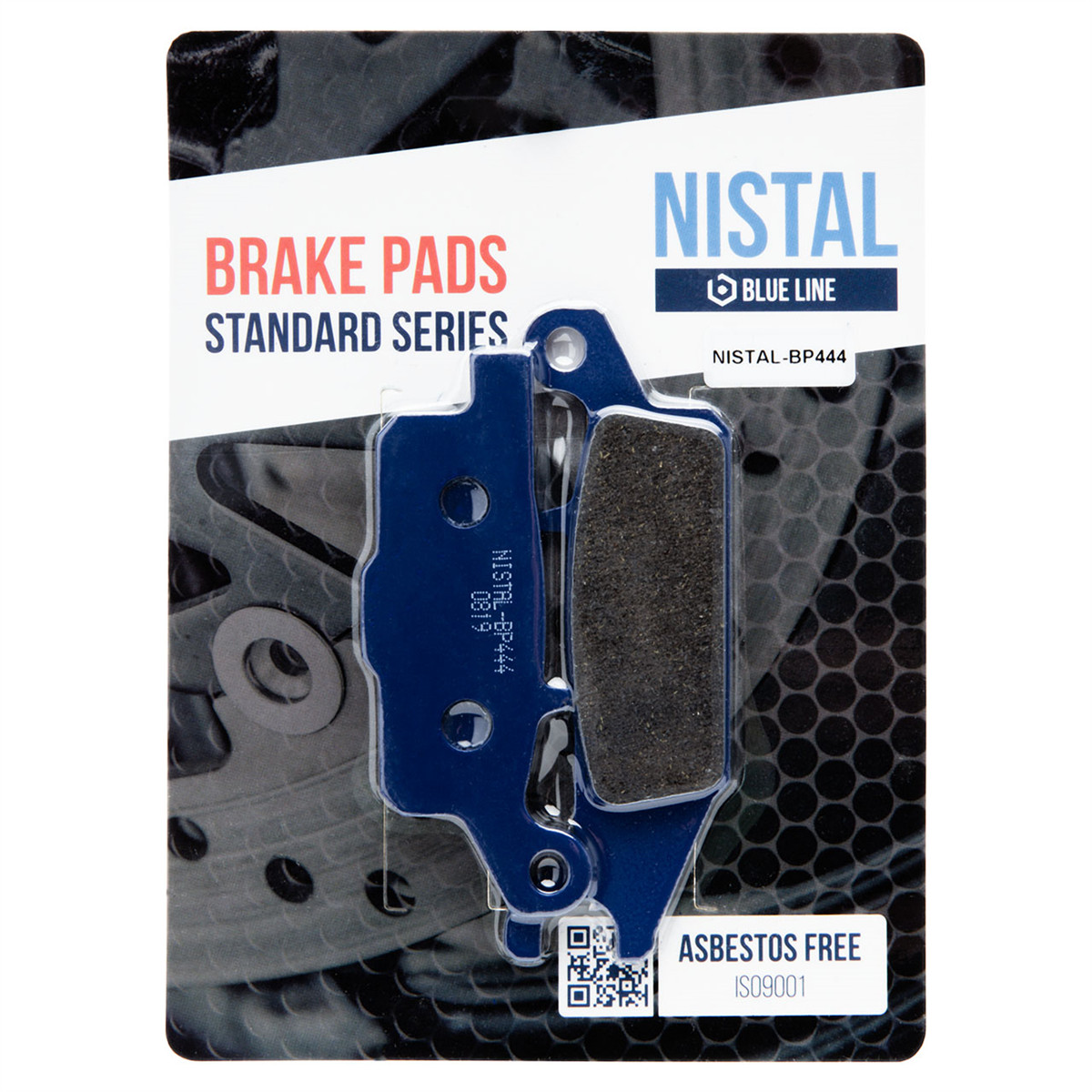 Klocki hamulcowe marki NISTAL to bezpieczny i trwały produkt posiadający doskonały stosunek jakości do ceny. Okładzina to organiczny materiał cierny wzbogacony dodatkami poprawiającymi hamowanie. Klocki z niebieskiej serii BLUE LINE dzięki zawartości 20% miedzi, zapewniają dobre odprowadzanie ciepła, nie szarpią i nie piszczą podczas hamowania. Zapewniają łagodne zużywanie się tarczy. Sprawdzą się również w cięższych motocyklach do rekreacyjnej jazdy. Wytwarzane zgodnie z certyfikatami: ISO 9001:2008, ISO 14001:2004, OHSAS 18001:2007.