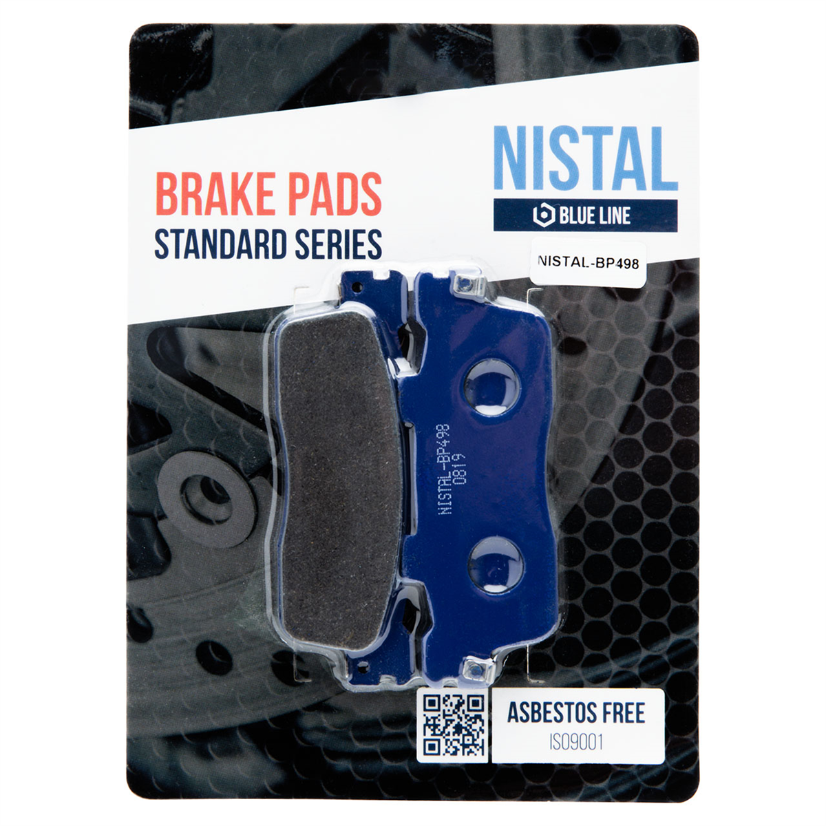 Klocki hamulcowe marki NISTAL to bezpieczny i trwały produkt posiadający doskonały stosunek jakości do ceny. Okładzina to organiczny materiał cierny wzbogacony dodatkami poprawiającymi hamowanie. Klocki z niebieskiej serii BLUE LINE dzięki zawartości 20% miedzi, zapewniają dobre odprowadzanie ciepła, nie szarpią i nie piszczą podczas hamowania. Zapewniają łagodne zużywanie się tarczy. Sprawdzą się również w cięższych motocyklach do rekreacyjnej jazdy. Wytwarzane zgodnie z certyfikatami: ISO 9001:2008, ISO 14001:2004, OHSAS 18001:2007.