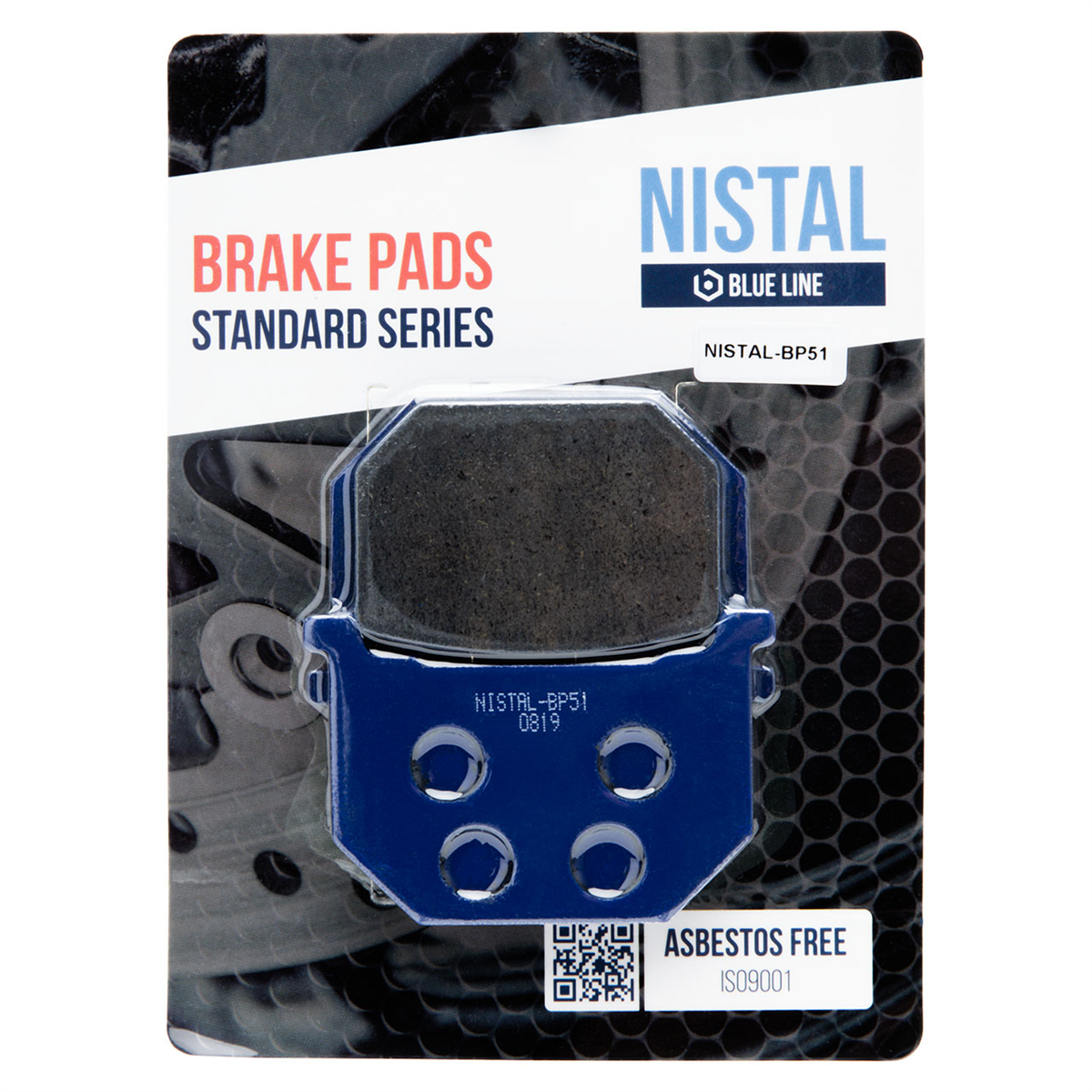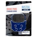 Klocki hamulcowe marki NISTAL to bezpieczny i trwały produkt posiadający doskonały stosunek jakości do ceny. Okładzina to organiczny materiał cierny wzbogacony dodatkami poprawiającymi hamowanie. Klocki z niebieskiej serii BLUE LINE dzięki zawartości 20% miedzi, zapewniają dobre odprowadzanie ciepła, nie szarpią i nie piszczą podczas hamowania. Zapewniają łagodne zużywanie się tarczy. Sprawdzą się również w cięższych motocyklach do rekreacyjnej jazdy. Wytwarzane zgodnie z certyfikatami: ISO 9001:2008, ISO 14001:2004, OHSAS 18001:2007.