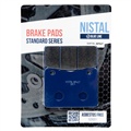 Klocki hamulcowe marki NISTAL to bezpieczny i trwały produkt posiadający doskonały stosunek jakości do ceny. Okładzina to organiczny materiał cierny wzbogacony dodatkami poprawiającymi hamowanie. Klocki z niebieskiej serii BLUE LINE dzięki zawartości 20% miedzi, zapewniają dobre odprowadzanie ciepła, nie szarpią i nie piszczą podczas hamowania. Zapewniają łagodne zużywanie się tarczy. Sprawdzą się również w cięższych motocyklach do rekreacyjnej jazdy. Wytwarzane zgodnie z certyfikatami: ISO 9001:2008, ISO 14001:2004, OHSAS 18001:2007.