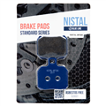Klocki hamulcowe marki NISTAL to bezpieczny i trwały produkt posiadający doskonały stosunek jakości do ceny. Okładzina to organiczny materiał cierny wzbogacony dodatkami poprawiającymi hamowanie. Klocki z niebieskiej serii BLUE LINE dzięki zawartości 20% miedzi, zapewniają dobre odprowadzanie ciepła, nie szarpią i nie piszczą podczas hamowania. Zapewniają łagodne zużywanie się tarczy. Sprawdzą się również w cięższych motocyklach do rekreacyjnej jazdy. Wytwarzane zgodnie z certyfikatami: ISO 9001:2008, ISO 14001:2004, OHSAS 18001:2007.