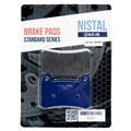 Klocki hamulcowe marki NISTAL to bezpieczny i trwały produkt posiadający doskonały stosunek jakości do ceny. Okładzina to organiczny materiał cierny wzbogacony dodatkami poprawiającymi hamowanie. Klocki z niebieskiej serii BLUE LINE dzięki zawartości 20% miedzi, zapewniają dobre odprowadzanie ciepła, nie szarpią i nie piszczą podczas hamowania. Zapewniają łagodne zużywanie się tarczy. Sprawdzą się również w cięższych motocyklach do rekreacyjnej jazdy. Wytwarzane zgodnie z certyfikatami: ISO 9001:2008, ISO 14001:2004, OHSAS 18001:2007.