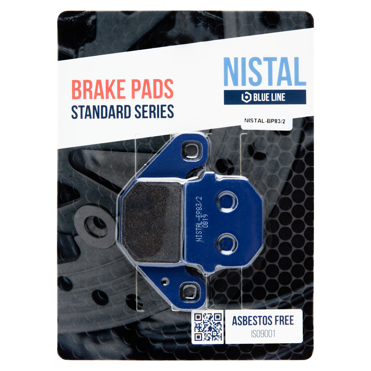 Klocki hamulcowe marki NISTAL to bezpieczny i trwały produkt posiadający doskonały stosunek jakości do ceny. Okładzina to organiczny materiał cierny wzbogacony dodatkami poprawiającymi hamowanie. Klocki z niebieskiej serii BLUE LINE dzięki zawartości 20% miedzi, zapewniają dobre odprowadzanie ciepła, nie szarpią i nie piszczą podczas hamowania. Zapewniają łagodne zużywanie się tarczy. Sprawdzą się również w cięższych motocyklach do rekreacyjnej jazdy. Wytwarzane zgodnie z certyfikatami: ISO 9001:2008, ISO 14001:2004, OHSAS 18001:2007.