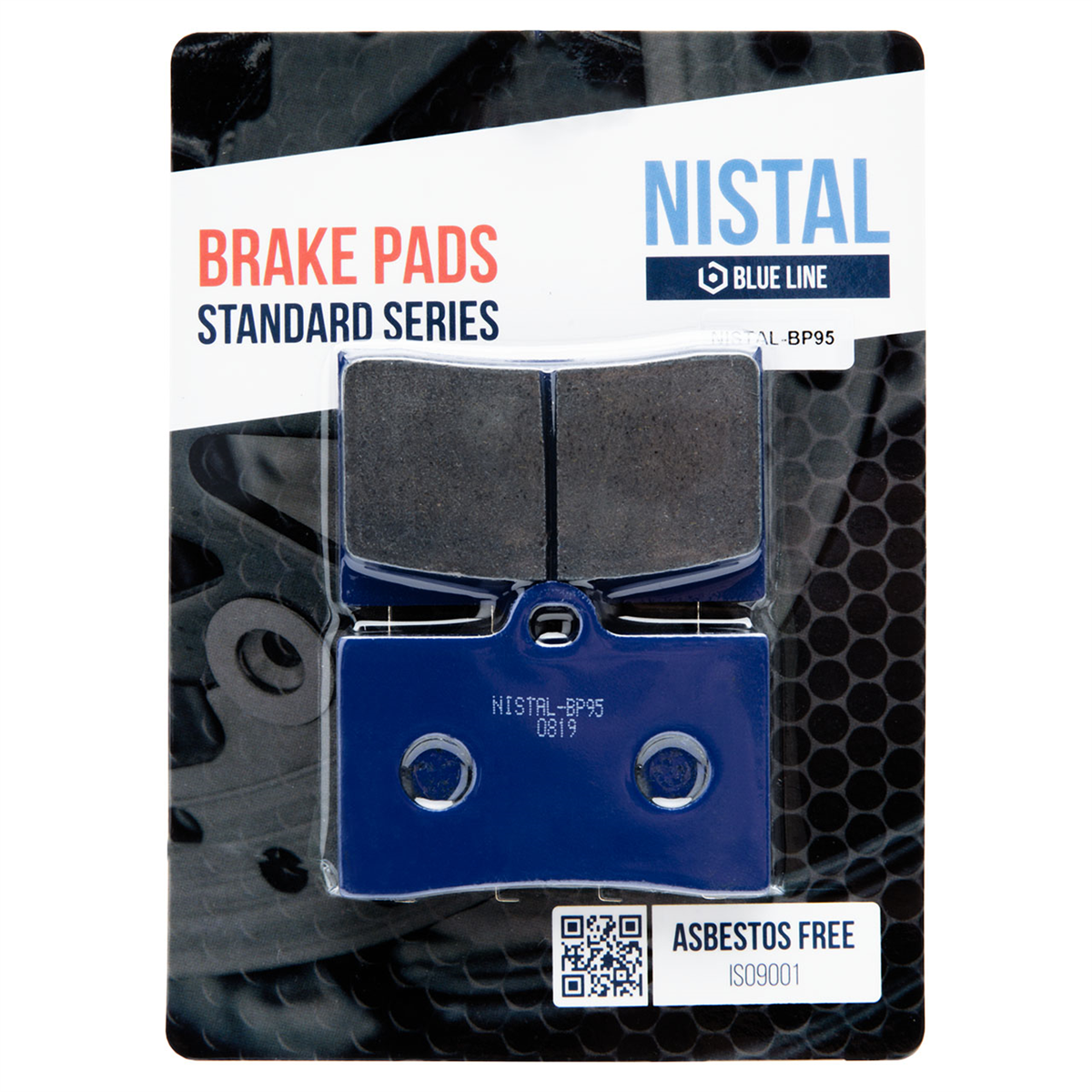 Klocki hamulcowe marki NISTAL to bezpieczny i trwały produkt posiadający doskonały stosunek jakości do ceny. Okładzina to organiczny materiał cierny wzbogacony dodatkami poprawiającymi hamowanie. Klocki z niebieskiej serii BLUE LINE dzięki zawartości 20% miedzi, zapewniają dobre odprowadzanie ciepła, nie szarpią i nie piszczą podczas hamowania. Zapewniają łagodne zużywanie się tarczy. Sprawdzą się również w cięższych motocyklach do rekreacyjnej jazdy. Wytwarzane zgodnie z certyfikatami: ISO 9001:2008, ISO 14001:2004, OHSAS 18001:2007.