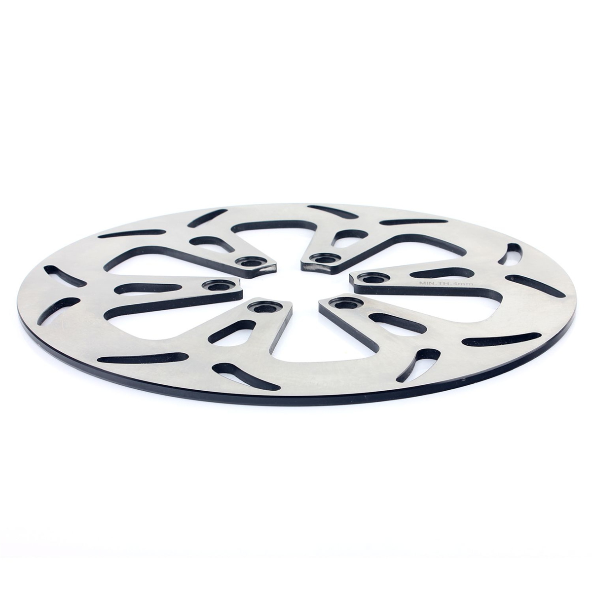 Materiał tarczy to stal nierdzewna 420 (2Cr13) o doskonałej odporności na korozję i zmienne temperatury jakim poddawane są tarcze hamulcowe. Wykonana przy użyciu technologii CNC. Tarcza posiada wyprofilowane wycięcia redukujące masę, ułatwiają także chłodzenie tarczy i oczyszczanie klocków hamulcowych. Tarcze posiadają certyfikat: ISO9001:2008.