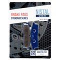 Klocki hamulcowe marki NISTAL to bezpieczny i trwały produkt posiadający doskonały stosunek jakości do ceny. Okładzina to organiczny materiał cierny wzbogacony dodatkami poprawiającymi hamowanie. Klocki z niebieskiej serii BLUE LINE dzięki zawartości 20% miedzi, zapewniają dobre odprowadzanie ciepła, nie szarpią i nie piszczą podczas hamowania. Zapewniają łagodne zużywanie się tarczy. Sprawdzą się również w cięższych motocyklach do rekreacyjnej jazdy. Wytwarzane zgodnie z certyfikatami: ISO 9001:2008, ISO 14001:2004, OHSAS 18001:2007.