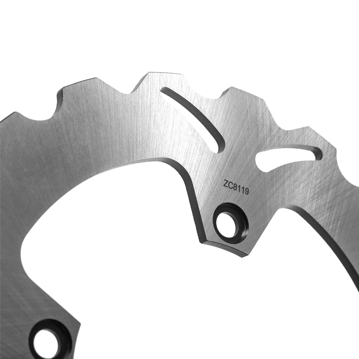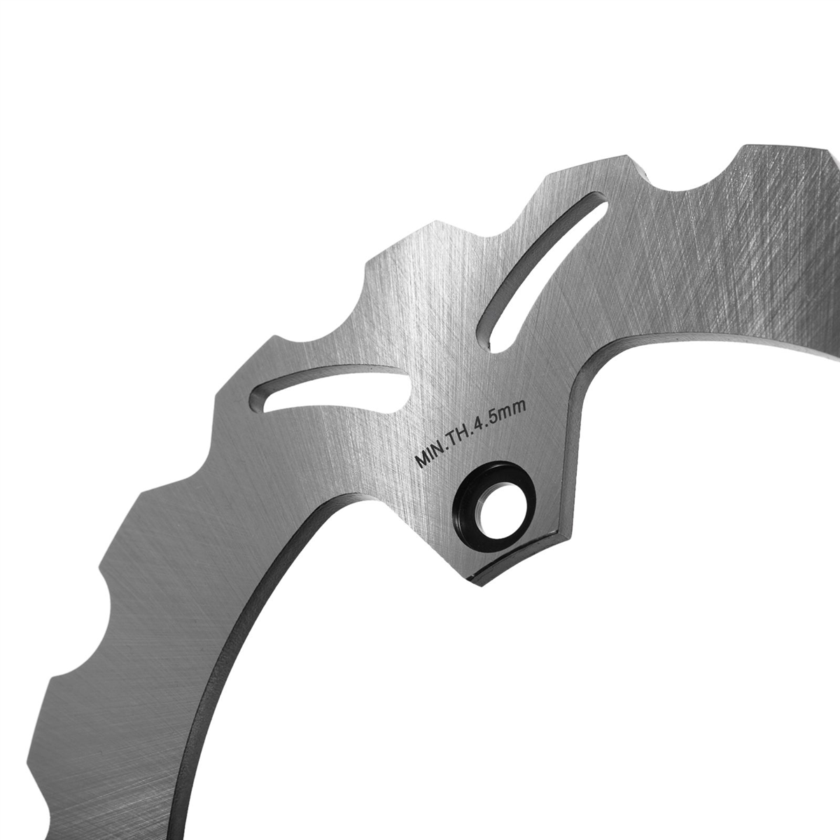 Materiał tarczy to stal nierdzewna 420 (2Cr13) o doskonałej odporności na korozję i zmienne temperatury jakim poddawane są tarcze hamulcowe. Wykonana przy użyciu technologii CNC. Tarcza posiada wyprofilowane wycięcia redukujące masę, ułatwiają także chłodzenie tarczy i oczyszczanie klocków hamulcowych. Tarcze posiadają certyfikat: ISO9001:2008.