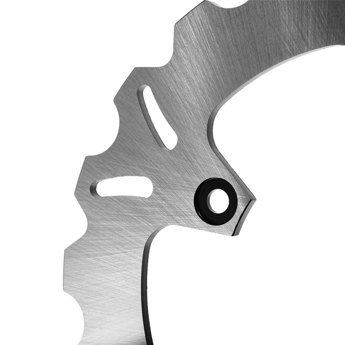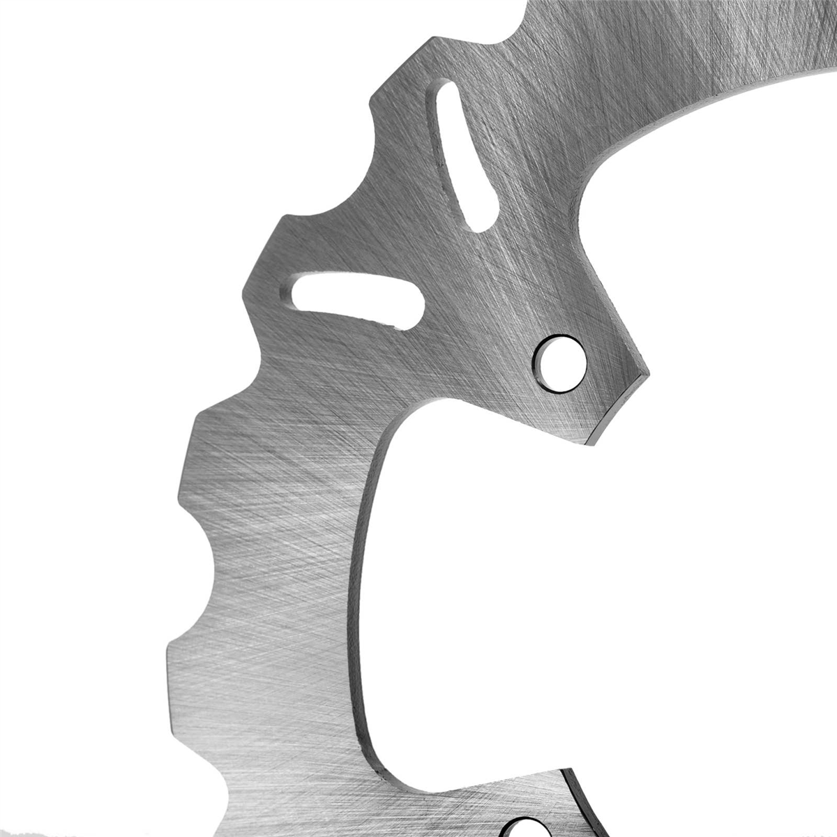 Materiał tarczy to stal nierdzewna 420 (2Cr13) o doskonałej odporności na korozję i zmienne temperatury jakim poddawane są tarcze hamulcowe. Wykonana przy użyciu technologii CNC. Tarcza posiada wyprofilowane wycięcia redukujące masę, ułatwiają także chłodzenie tarczy i oczyszczanie klocków hamulcowych. Tarcze posiadają certyfikat: ISO9001:2008.