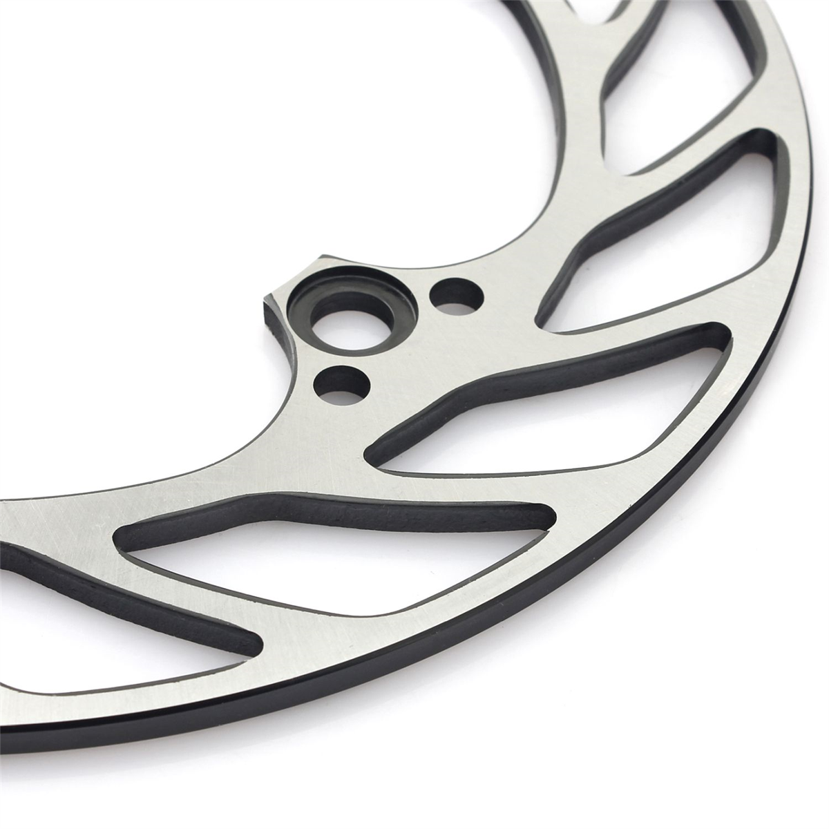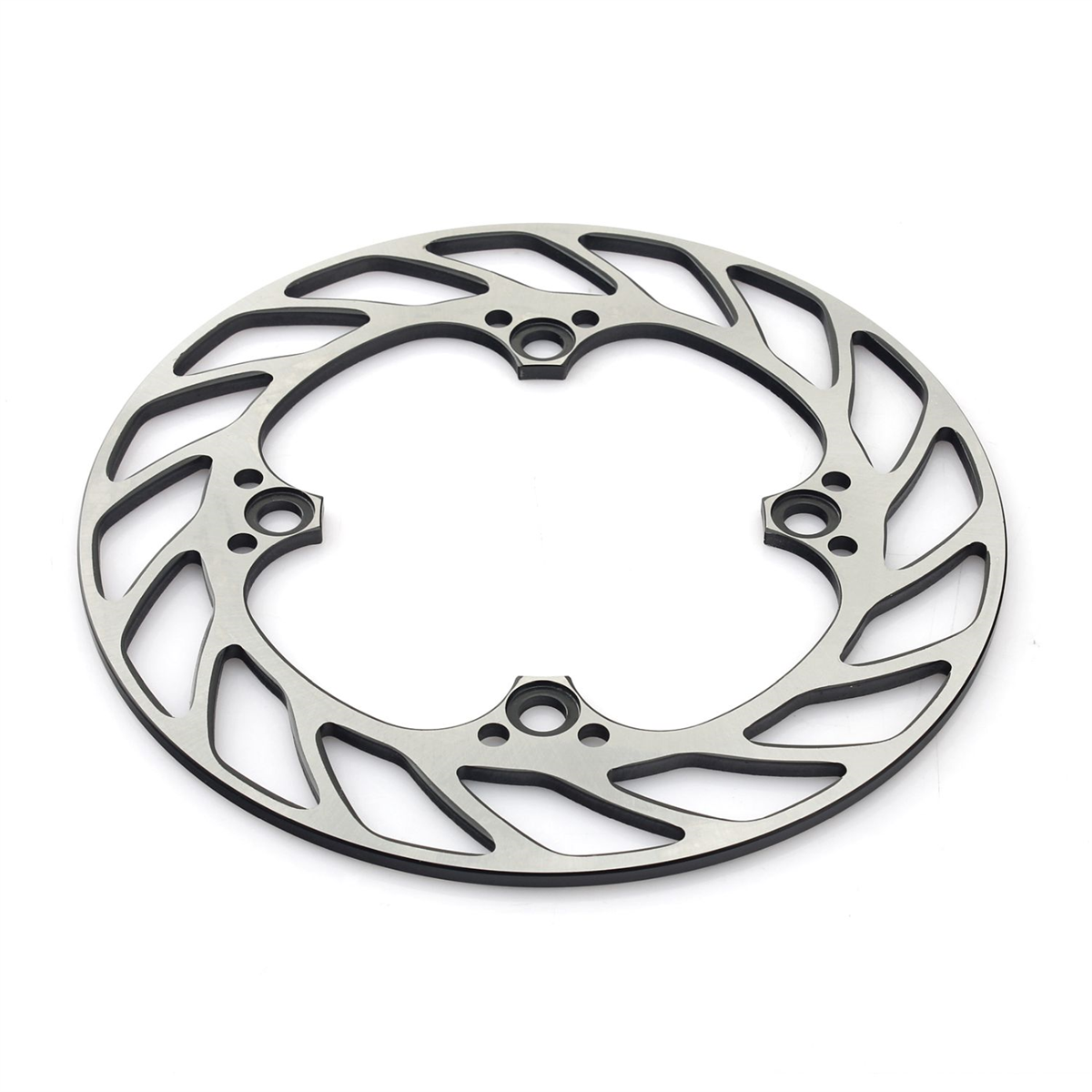 Materiał tarczy to stal nierdzewna 420 (2Cr13) o doskonałej odporności na korozję i zmienne temperatury jakim poddawane są tarcze hamulcowe. Wykonana przy użyciu technologii CNC. Tarcza posiada wyprofilowane wycięcia redukujące masę, ułatwiają także chłodzenie tarczy i oczyszczanie klocków hamulcowych. Tarcze posiadają certyfikat: ISO9001:2008.