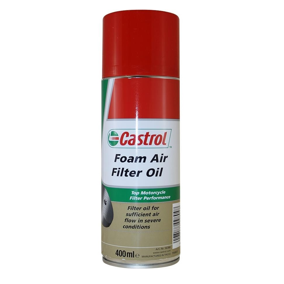 Olej do nasączania motocyklowych filtrów powietrza, polecany szczególnie do konserwacji i utrzymania w dobrej kondycji filtrów powietrza motocykli szosowych oraz typu off road, cross, enduro, trial oraz quadów ATV. Doskonale zatrzymuje piasek, jak i drobne zanieczyszczenia. Castrol Foam Air Filter Oil jest odpowiedni dla wszystkich typów 2-suwowych i 4-suwowych silników, w których jest używany gąbkowy filtr powietrza. Aerozol ułatwia szybką i dokładną aplikację.
