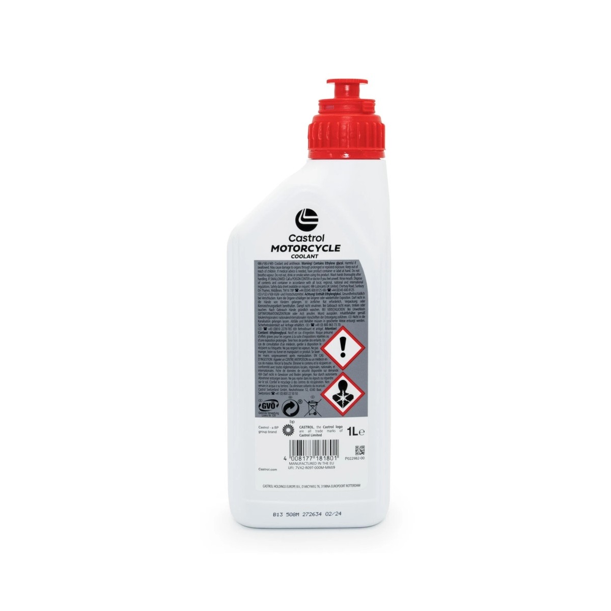Płyn do układów chłodzenia motocykli Castrol Motorcycle Coolant jest wstępnie rozcieńczonym, środkiem ciepłoprzewodzącym o pełnej formulacji na bazie glikolu etylenowego. Opracowany pod kątem spełnienia wymogów dla wszystkich motocykli i skuterów chłodzonych wodą.