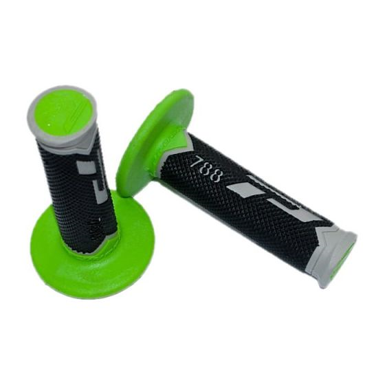 Trójskładnikowe manetki cross. Twardy materiał wewnątrz minimalizujący ruchy na kierownicy, na zewnątrz pokryty miękkim żelem, na bokach zastosowany wzmocniony materiał.