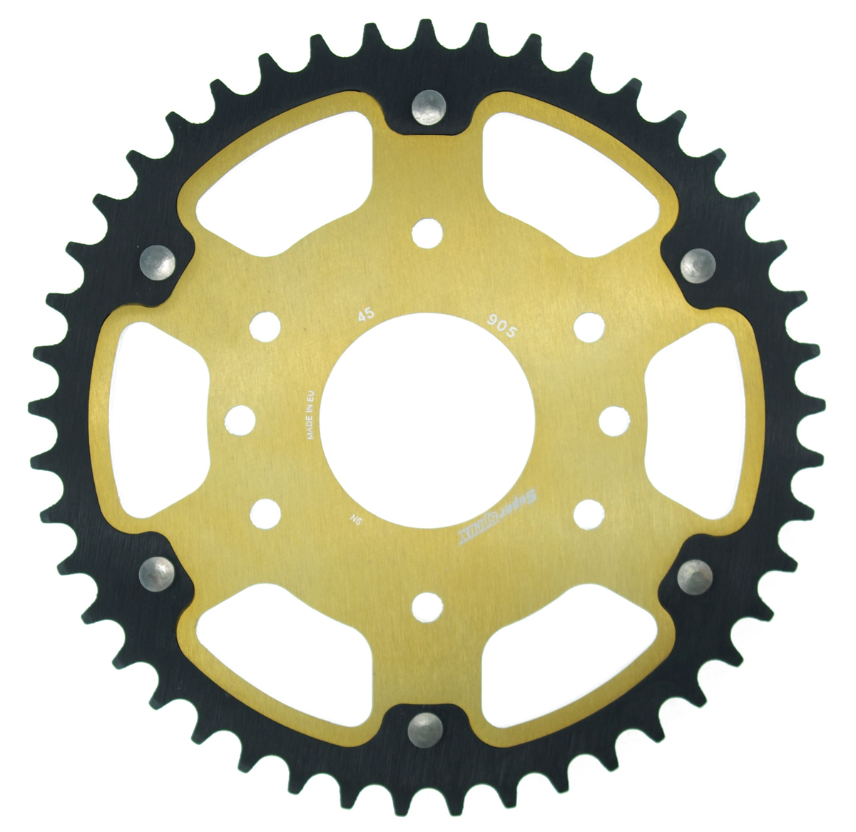 Zębatka SUPERSPROX STEALTH aluminiowo-stalowa złota tył 45 zębów.