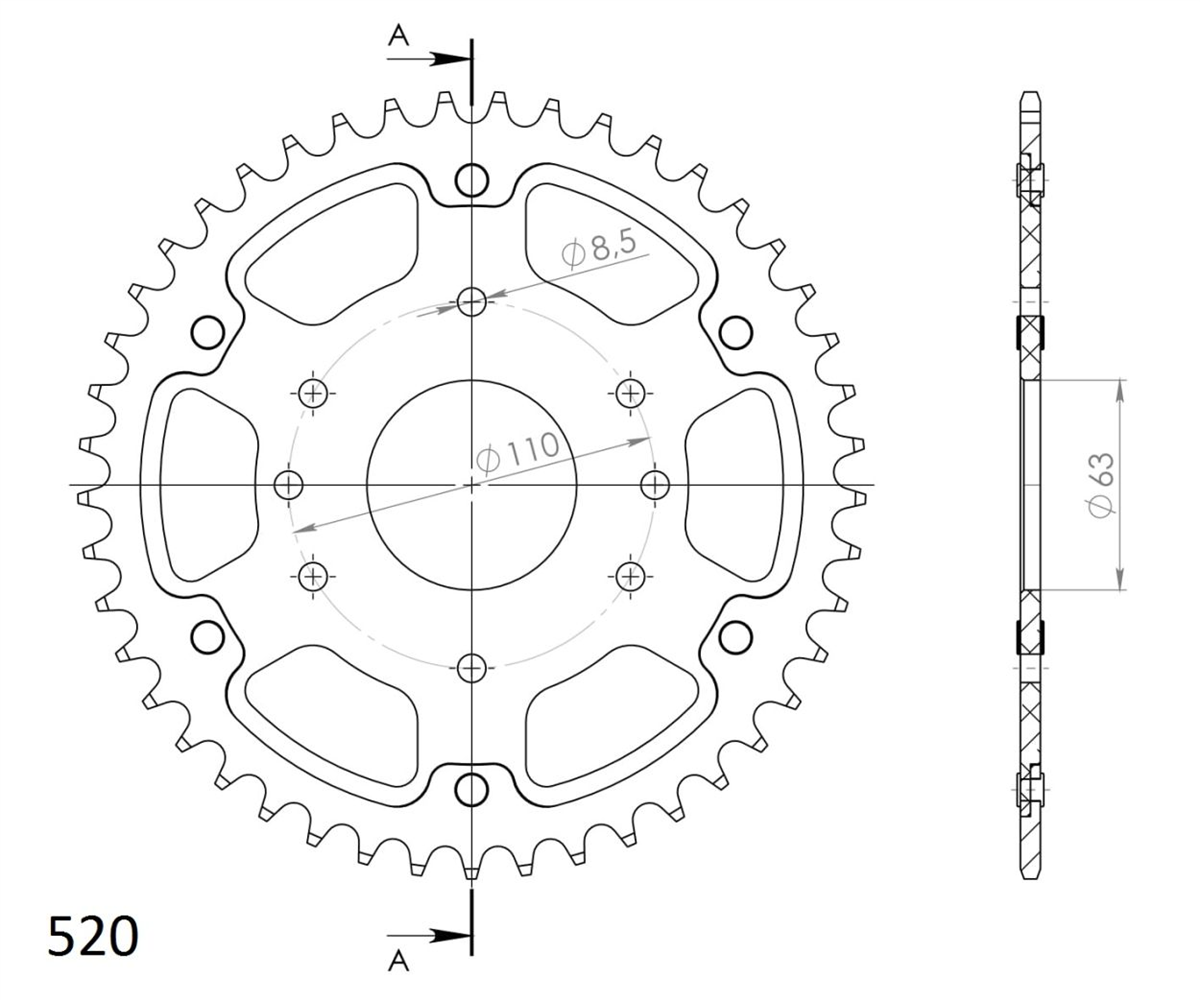 Środek zębatki wykonany jest z lekkiego i wytrzymałego aluminum lotniczego, natomiast korona zębów wykonana jest z niklowanej stali węglowej.