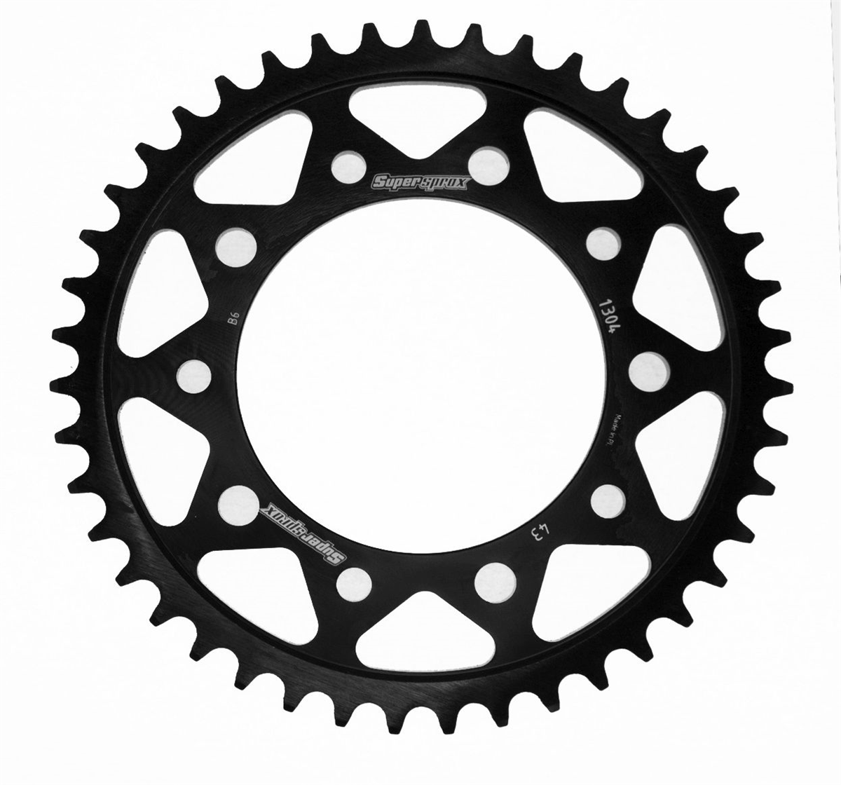 Supersprox - wyścigowe zębatki stalowe. Rozwijane na torze wyścigowym aby zapewnić wytrzymałość i wysokie osiągi. Zaprojektowane w systemie CAD i cięte CNC-laser aby zapewnić idealny montaż na kole. Wykonane ze stali SC-45 zgodnie z wysokimi normami Supersprox, pokryte unikalnym antykorozyjnym podwójnym ocynkiem (powłoka o nazwie 2XZINK) i wykończone na czarno. Wytrzymają 3 razy dłużej niż jakakolwiek aluminiowa zębatka. Jedne z najlżejszych zębatek stalowych na rynku. Dbałość o detale dotyczy także wyglądu.