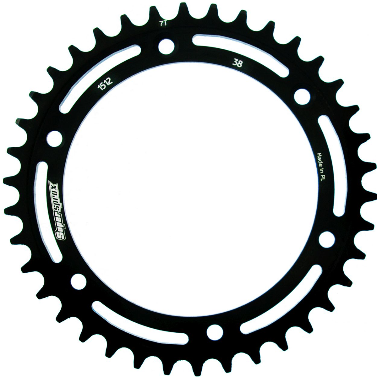 Supersprox - wyścigowe zębatki stalowe. Rozwijane na torze wyścigowym aby zapewnić wytrzymałość i wysokie osiągi. Zaprojektowane w systemie CAD i cięte CNC-laser aby zapewnić idealny montaż na kole. Wykonane ze stali SC-45 zgodnie z wysokimi normami Supersprox, pokryte unikalnym antykorozyjnym podwójnym ocynkiem (powłoka o nazwie 2XZINK) i wykończone na czarno. Wytrzymają 3 razy dłużej niż jakakolwiek aluminiowa zębatka. Jedne z najlżejszych zębatek stalowych na rynku. Dbałość o detale dotyczy także wyglądu.