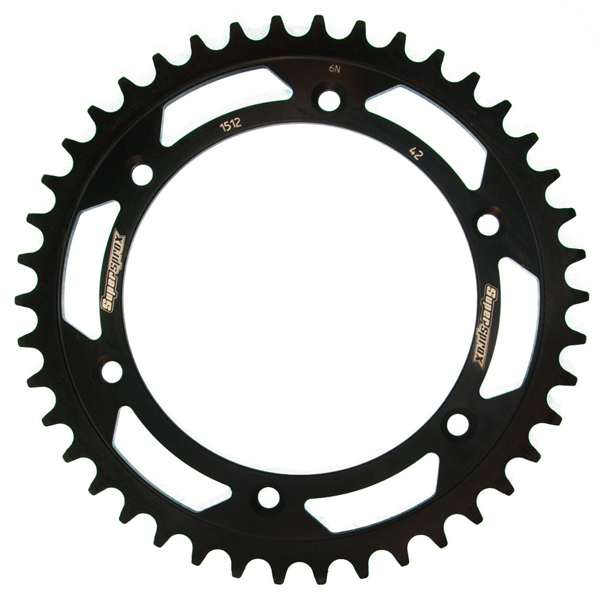 Supersprox - wyścigowe zębatki stalowe. Rozwijane na torze wyścigowym aby zapewnić wytrzymałość i wysokie osiągi. Zaprojektowane w systemie CAD i cięte CNC-laser aby zapewnić idealny montaż na kole. Wykonane ze stali SC-45 zgodnie z wysokimi normami Supersprox, pokryte unikalnym antykorozyjnym podwójnym ocynkiem (powłoka o nazwie 2XZINK) i wykończone na czarno. Wytrzymają 3 razy dłużej niż jakakolwiek aluminiowa zębatka. Jedne z najlżejszych zębatek stalowych na rynku. Dbałość o detale dotyczy także wyglądu.