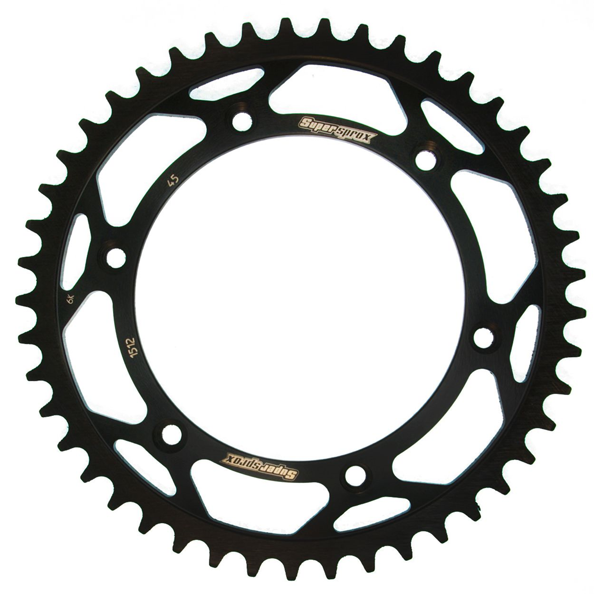 Supersprox - wyścigowe zębatki stalowe. Rozwijane na torze wyścigowym aby zapewnić wytrzymałość i wysokie osiągi. Zaprojektowane w systemie CAD i cięte CNC-laser aby zapewnić idealny montaż na kole. Wykonane ze stali SC-45 zgodnie z wysokimi normami Supersprox, pokryte unikalnym antykorozyjnym podwójnym ocynkiem (powłoka o nazwie 2XZINK) i wykończone na czarno. Wytrzymają 3 razy dłużej niż jakakolwiek aluminiowa zębatka. Jedne z najlżejszych zębatek stalowych na rynku. Dbałość o detale dotyczy także wyglądu.