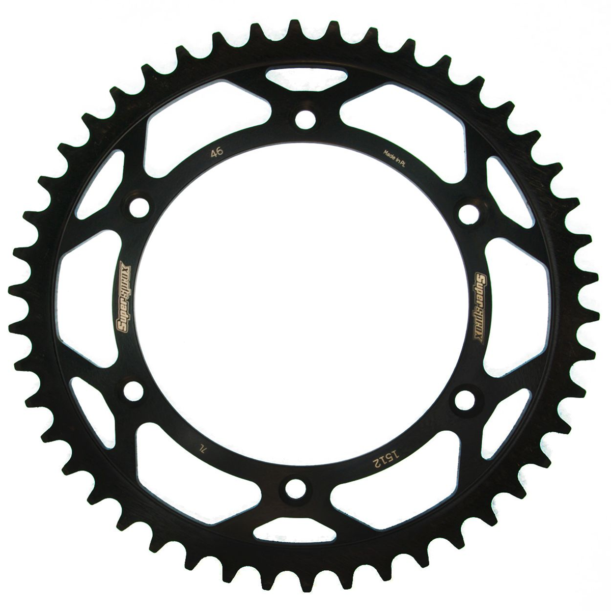 Supersprox - wyścigowe zębatki stalowe. Rozwijane na torze wyścigowym aby zapewnić wytrzymałość i wysokie osiągi. Zaprojektowane w systemie CAD i cięte CNC-laser aby zapewnić idealny montaż na kole. Wykonane ze stali SC-45 zgodnie z wysokimi normami Supersprox, pokryte unikalnym antykorozyjnym podwójnym ocynkiem (powłoka o nazwie 2XZINK) i wykończone na czarno. Wytrzymają 3 razy dłużej niż jakakolwiek aluminiowa zębatka. Jedne z najlżejszych zębatek stalowych na rynku. Dbałość o detale dotyczy także wyglądu.