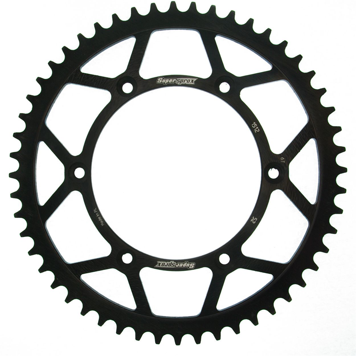 Supersprox - wyścigowe zębatki stalowe. Rozwijane na torze wyścigowym aby zapewnić wytrzymałość i wysokie osiągi. Zaprojektowane w systemie CAD i cięte CNC-laser aby zapewnić idealny montaż na kole. Wykonane ze stali SC-45 zgodnie z wysokimi normami Supersprox, pokryte unikalnym antykorozyjnym podwójnym ocynkiem (powłoka o nazwie 2XZINK) i wykończone na czarno. Wytrzymają 3 razy dłużej niż jakakolwiek aluminiowa zębatka. Jedne z najlżejszych zębatek stalowych na rynku. Dbałość o detale dotyczy także wyglądu.