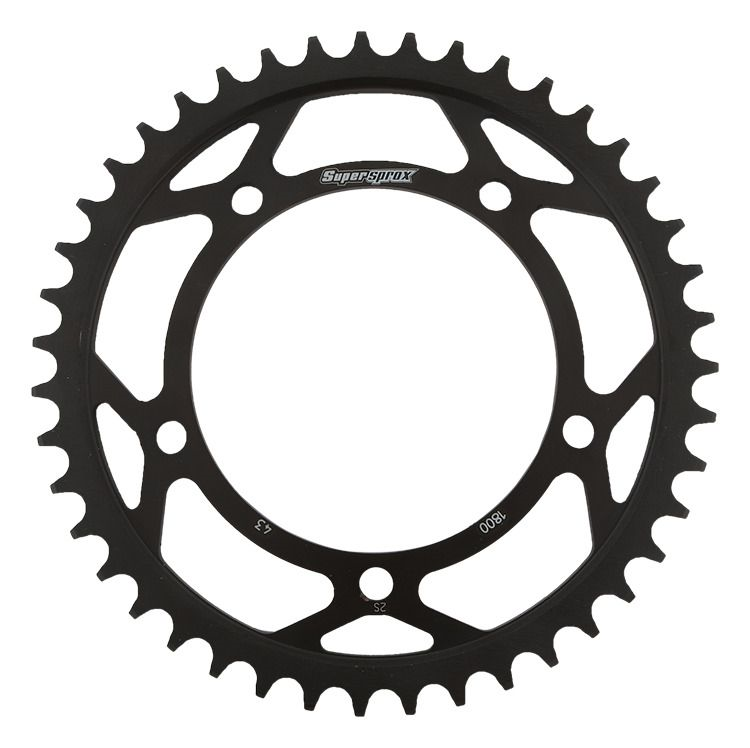 Supersprox - wyścigowe zębatki stalowe. Rozwijane na torze wyścigowym aby zapewnić wytrzymałość i wysokie osiągi. Zaprojektowane w systemie CAD i cięte CNC-laser aby zapewnić idealny montaż na kole. Wykonane ze stali SC-45 zgodnie z wysokimi normami Supersprox, pokryte unikalnym antykorozyjnym podwójnym ocynkiem (powłoka o nazwie 2XZINK) i wykończone na czarno. Wytrzymają 3 razy dłużej niż jakakolwiek aluminiowa zębatka. Jedne z najlżejszych zębatek stalowych na rynku. Dbałość o detale dotyczy także wyglądu.