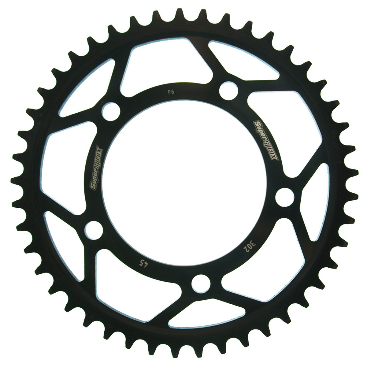 Supersprox - wyścigowe zębatki stalowe. Rozwijane na torze wyścigowym aby zapewnić wytrzymałość i wysokie osiągi. Zaprojektowane w systemie CAD i cięte CNC-laser aby zapewnić idealny montaż na kole. Wykonane ze stali SC-45 zgodnie z wysokimi normami Supersprox, pokryte unikalnym antykorozyjnym podwójnym ocynkiem (powłoka o nazwie 2XZINK) i wykończone na czarno. Wytrzymają 3 razy dłużej niż jakakolwiek aluminiowa zębatka. Jedne z najlżejszych zębatek stalowych na rynku. Dbałość o detale dotyczy także wyglądu.