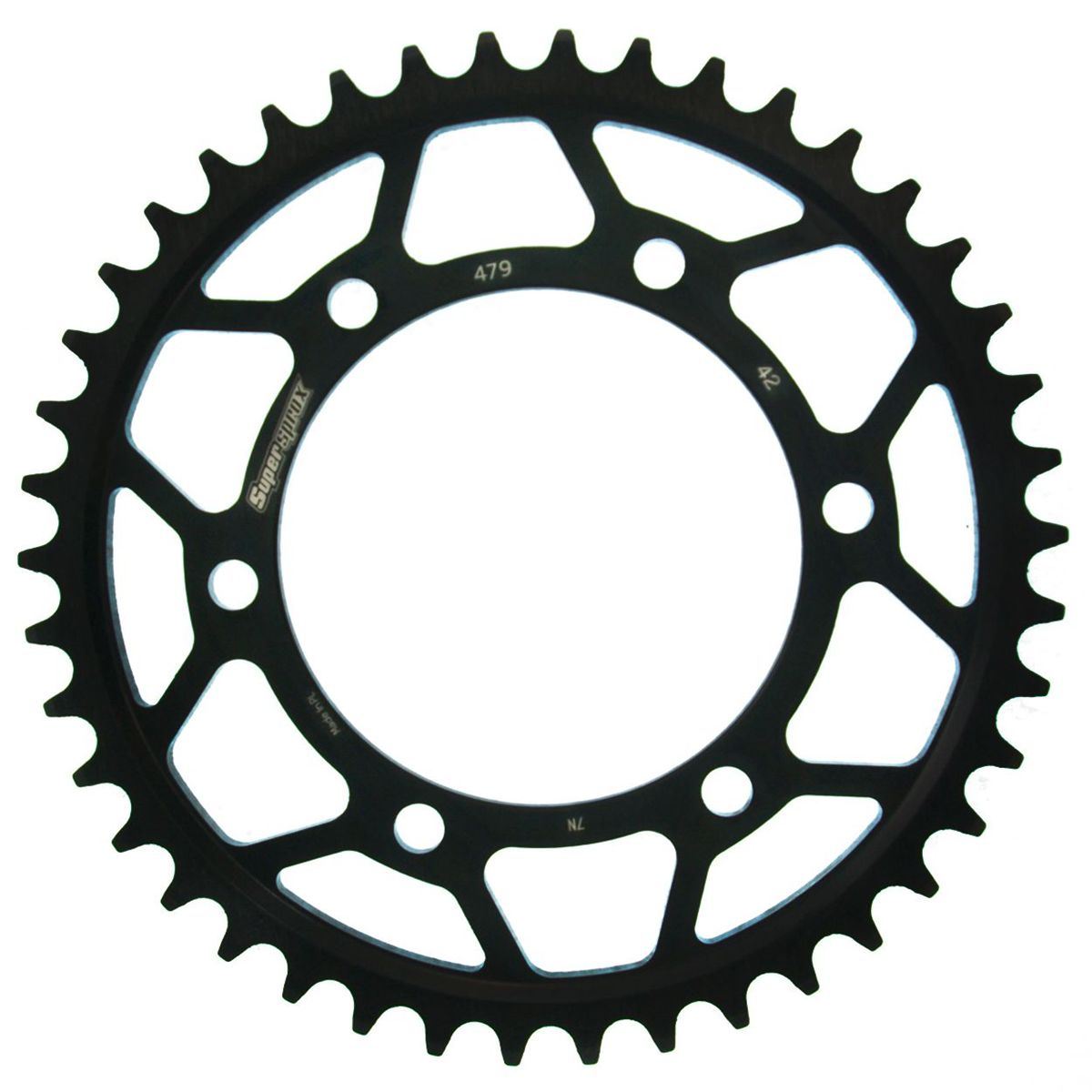 Supersprox - wyścigowe zębatki stalowe. Rozwijane na torze wyścigowym aby zapewnić wytrzymałość i wysokie osiągi. Zaprojektowane w systemie CAD i cięte CNC-laser aby zapewnić idealny montaż na kole. Wykonane ze stali SC-45 zgodnie z wysokimi normami Supersprox, pokryte unikalnym antykorozyjnym podwójnym ocynkiem (powłoka o nazwie 2XZINK) i wykończone na czarno. Wytrzymają 3 razy dłużej niż jakakolwiek aluminiowa zębatka. Jedne z najlżejszych zębatek stalowych na rynku. Dbałość o detale dotyczy także wyglądu.