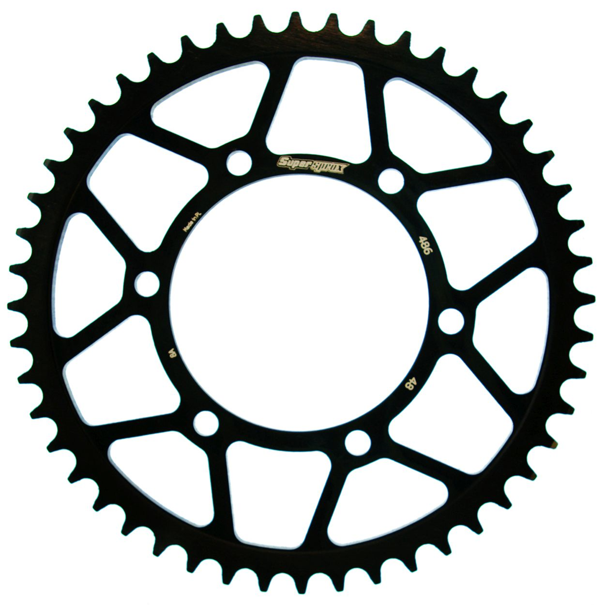 Supersprox - wyścigowe zębatki stalowe. Rozwijane na torze wyścigowym aby zapewnić wytrzymałość i wysokie osiągi. Zaprojektowane w systemie CAD i cięte CNC-laser aby zapewnić idealny montaż na kole. Wykonane ze stali SC-45 zgodnie z wysokimi normami Supersprox, pokryte unikalnym antykorozyjnym podwójnym ocynkiem (powłoka o nazwie 2XZINK) i wykończone na czarno. Wytrzymają 3 razy dłużej niż jakakolwiek aluminiowa zębatka. Jedne z najlżejszych zębatek stalowych na rynku. Dbałość o detale dotyczy także wyglądu.