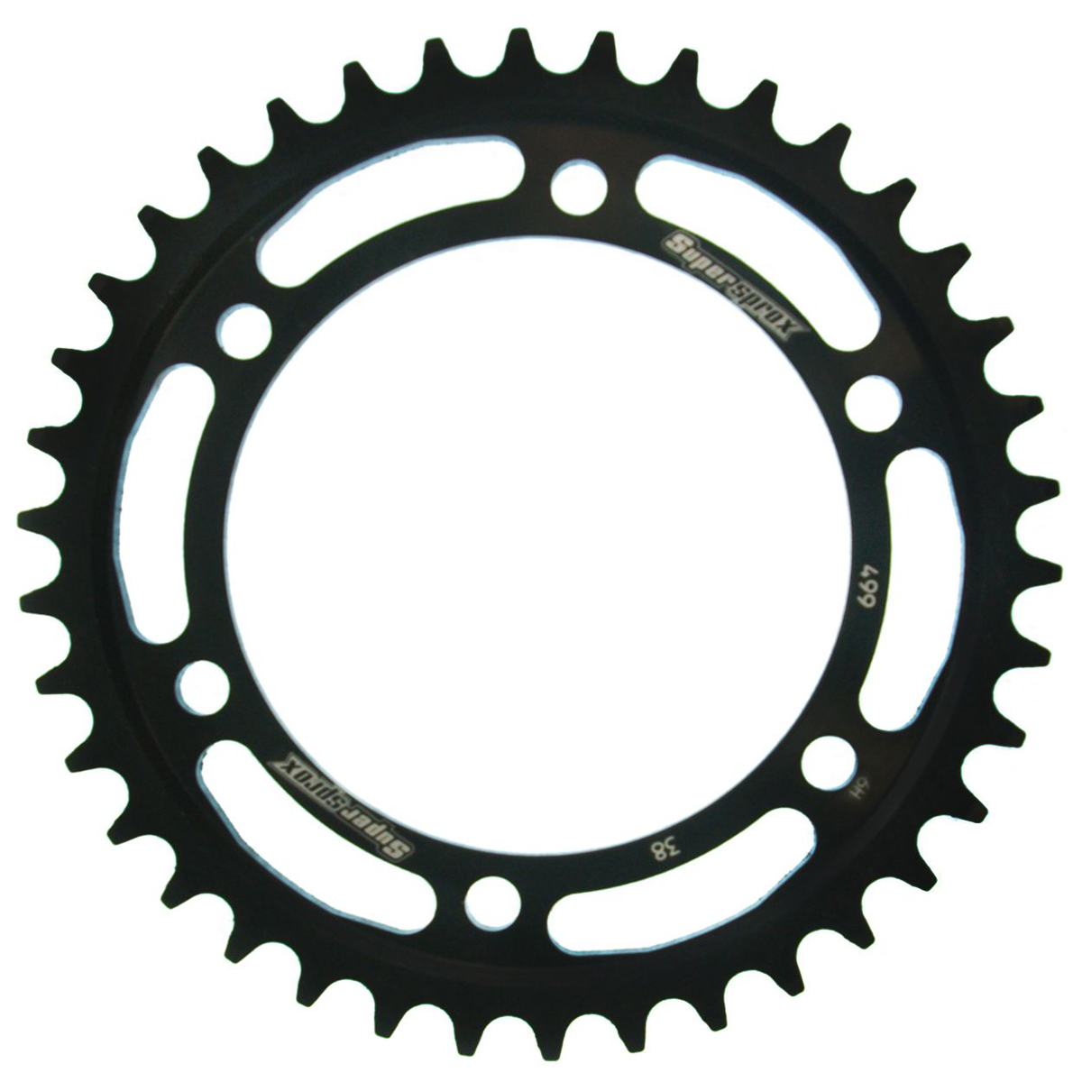 Supersprox - wyścigowe zębatki stalowe. Rozwijane na torze wyścigowym aby zapewnić wytrzymałość i wysokie osiągi. Zaprojektowane w systemie CAD i cięte CNC-laser aby zapewnić idealny montaż na kole. Wykonane ze stali SC-45 zgodnie z wysokimi normami Supersprox, pokryte unikalnym antykorozyjnym podwójnym ocynkiem (powłoka o nazwie 2XZINK) i wykończone na czarno. Wytrzymają 3 razy dłużej niż jakakolwiek aluminiowa zębatka. Jedne z najlżejszych zębatek stalowych na rynku. Dbałość o detale dotyczy także wyglądu.