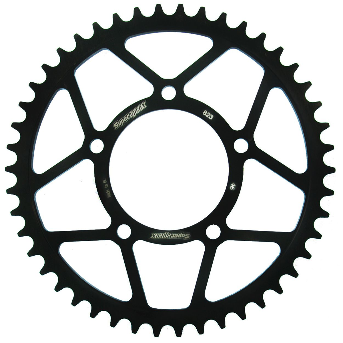 Supersprox - wyścigowe zębatki stalowe. Rozwijane na torze wyścigowym aby zapewnić wytrzymałość i wysokie osiągi. Zaprojektowane w systemie CAD i cięte CNC-laser aby zapewnić idealny montaż na kole. Wykonane ze stali SC-45 zgodnie z wysokimi normami Supersprox, pokryte unikalnym antykorozyjnym podwójnym ocynkiem (powłoka o nazwie 2XZINK) i wykończone na czarno. Wytrzymają 3 razy dłużej niż jakakolwiek aluminiowa zębatka. Jedne z najlżejszych zębatek stalowych na rynku. Dbałość o detale dotyczy także wyglądu.