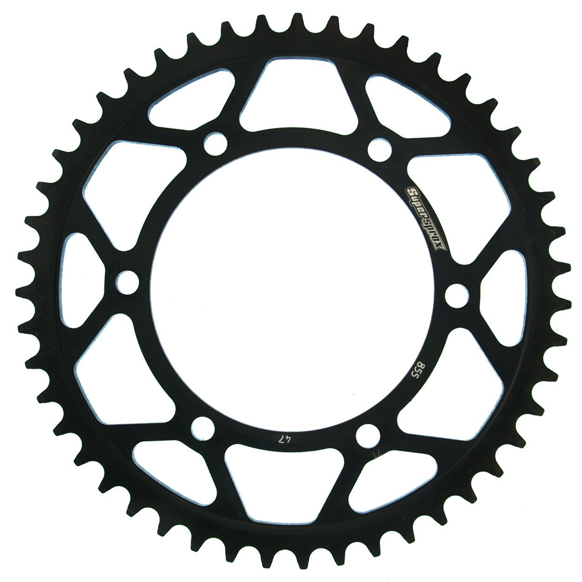 Supersprox - wyścigowe zębatki stalowe. Rozwijane na torze wyścigowym aby zapewnić wytrzymałość i wysokie osiągi. Zaprojektowane w systemie CAD i cięte CNC-laser aby zapewnić idealny montaż na kole. Wykonane ze stali SC-45 zgodnie z wysokimi normami Supersprox, pokryte unikalnym antykorozyjnym podwójnym ocynkiem (powłoka o nazwie 2XZINK) i wykończone na czarno. Wytrzymają 3 razy dłużej niż jakakolwiek aluminiowa zębatka. Jedne z najlżejszych zębatek stalowych na rynku. Dbałość o detale dotyczy także wyglądu.