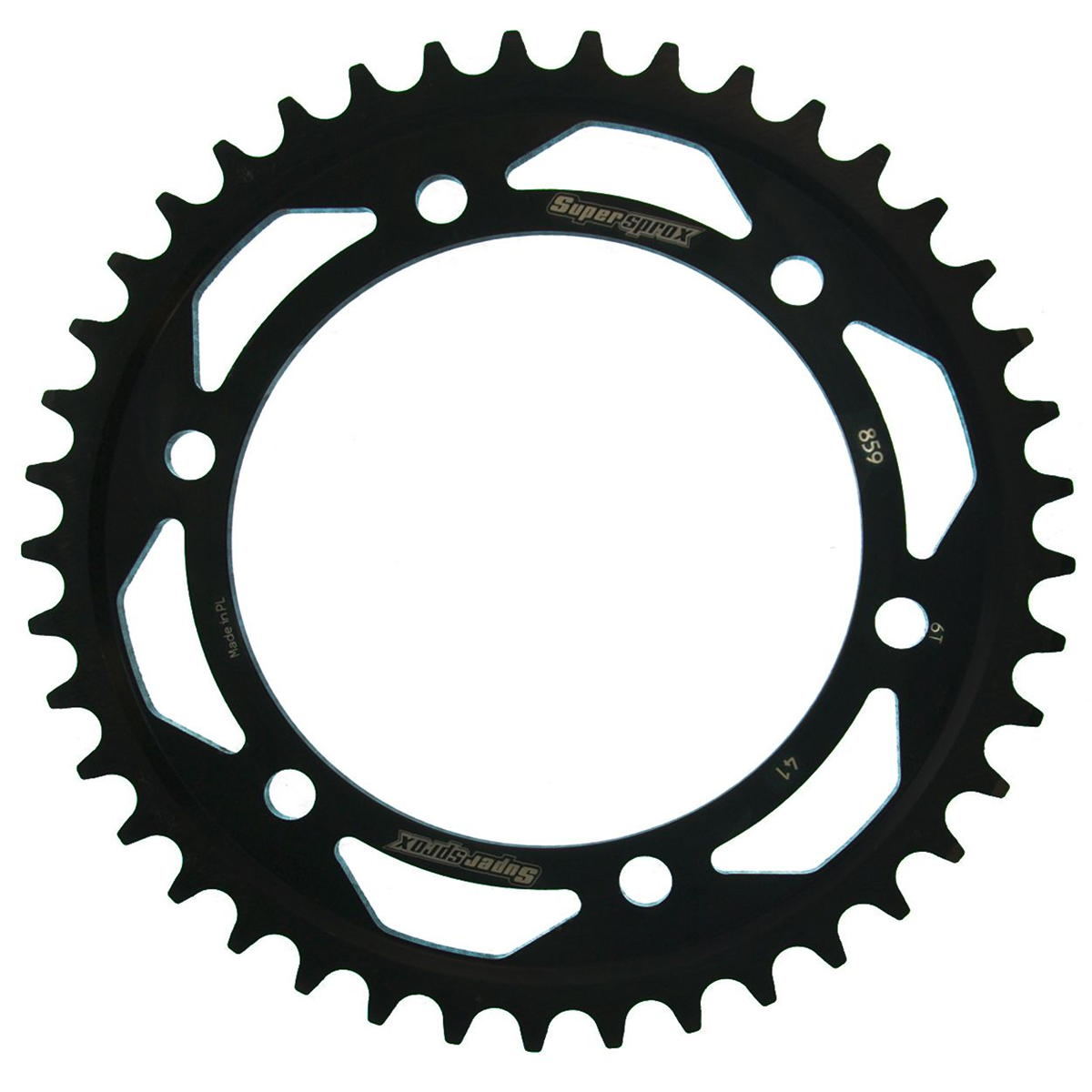 Supersprox - wyścigowe zębatki stalowe. Rozwijane na torze wyścigowym aby zapewnić wytrzymałość i wysokie osiągi. Zaprojektowane w systemie CAD i cięte CNC-laser aby zapewnić idealny montaż na kole. Wykonane ze stali SC-45 zgodnie z wysokimi normami Supersprox, pokryte unikalnym antykorozyjnym podwójnym ocynkiem (powłoka o nazwie 2XZINK) i wykończone na czarno. Wytrzymają 3 razy dłużej niż jakakolwiek aluminiowa zębatka. Jedne z najlżejszych zębatek stalowych na rynku. Dbałość o detale dotyczy także wyglądu.