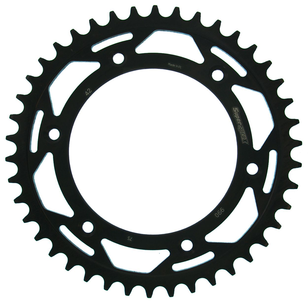 Supersprox - wyścigowe zębatki stalowe. Rozwijane na torze wyścigowym aby zapewnić wytrzymałość i wysokie osiągi. Zaprojektowane w systemie CAD i cięte CNC-laser aby zapewnić idealny montaż na kole. Wykonane ze stali SC-45 zgodnie z wysokimi normami Supersprox, pokryte unikalnym antykorozyjnym podwójnym ocynkiem (powłoka o nazwie 2XZINK) i wykończone na czarno. Wytrzymają 3 razy dłużej niż jakakolwiek aluminiowa zębatka. Jedne z najlżejszych zębatek stalowych na rynku. Dbałość o detale dotyczy także wyglądu.