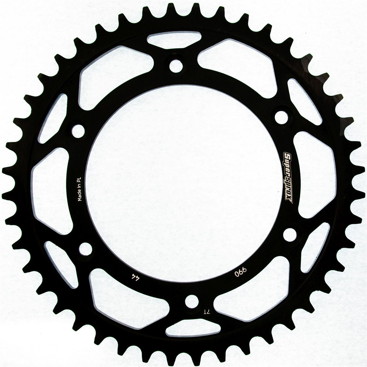 Supersprox - wyścigowe zębatki stalowe. Rozwijane na torze wyścigowym aby zapewnić wytrzymałość i wysokie osiągi. Zaprojektowane w systemie CAD i cięte CNC-laser aby zapewnić idealny montaż na kole. Wykonane ze stali SC-45 zgodnie z wysokimi normami Supersprox, pokryte unikalnym antykorozyjnym podwójnym ocynkiem (powłoka o nazwie 2XZINK) i wykończone na czarno. Wytrzymają 3 razy dłużej niż jakakolwiek aluminiowa zębatka. Jedne z najlżejszych zębatek stalowych na rynku. Dbałość o detale dotyczy także wyglądu.