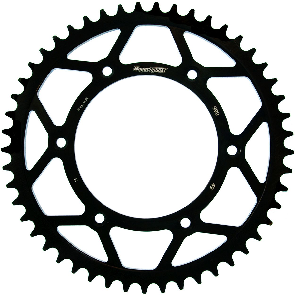 Supersprox - wyścigowe zębatki stalowe. Rozwijane na torze wyścigowym aby zapewnić wytrzymałość i wysokie osiągi. Zaprojektowane w systemie CAD i cięte CNC-laser aby zapewnić idealny montaż na kole. Wykonane ze stali SC-45 zgodnie z wysokimi normami Supersprox, pokryte unikalnym antykorozyjnym podwójnym ocynkiem (powłoka o nazwie 2XZINK) i wykończone na czarno. Wytrzymają 3 razy dłużej niż jakakolwiek aluminiowa zębatka. Jedne z najlżejszych zębatek stalowych na rynku. Dbałość o detale dotyczy także wyglądu.