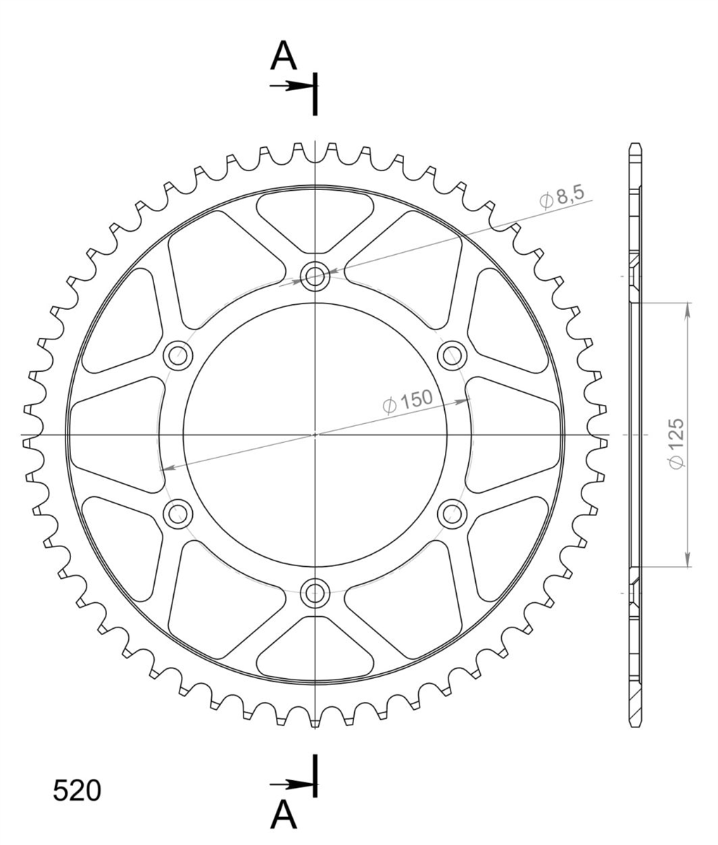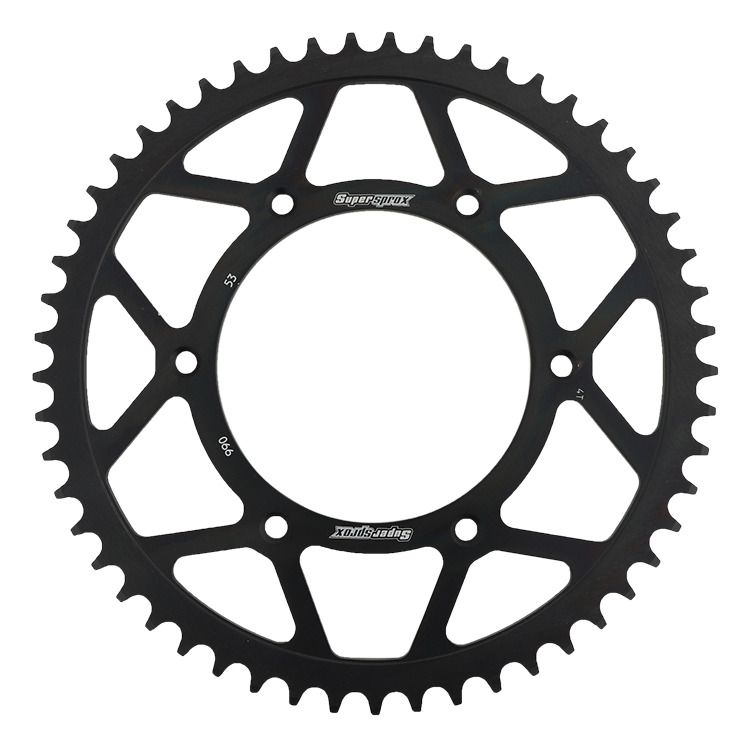 Supersprox - wyścigowe zębatki stalowe. Rozwijane na torze wyścigowym aby zapewnić wytrzymałość i wysokie osiągi. Zaprojektowane w systemie CAD i cięte CNC-laser aby zapewnić idealny montaż na kole. Wykonane ze stali SC-45 zgodnie z wysokimi normami Supersprox, pokryte unikalnym antykorozyjnym podwójnym ocynkiem (powłoka o nazwie 2XZINK) i wykończone na czarno. Wytrzymają 3 razy dłużej niż jakakolwiek aluminiowa zębatka. Jedne z najlżejszych zębatek stalowych na rynku. Dbałość o detale dotyczy także wyglądu.