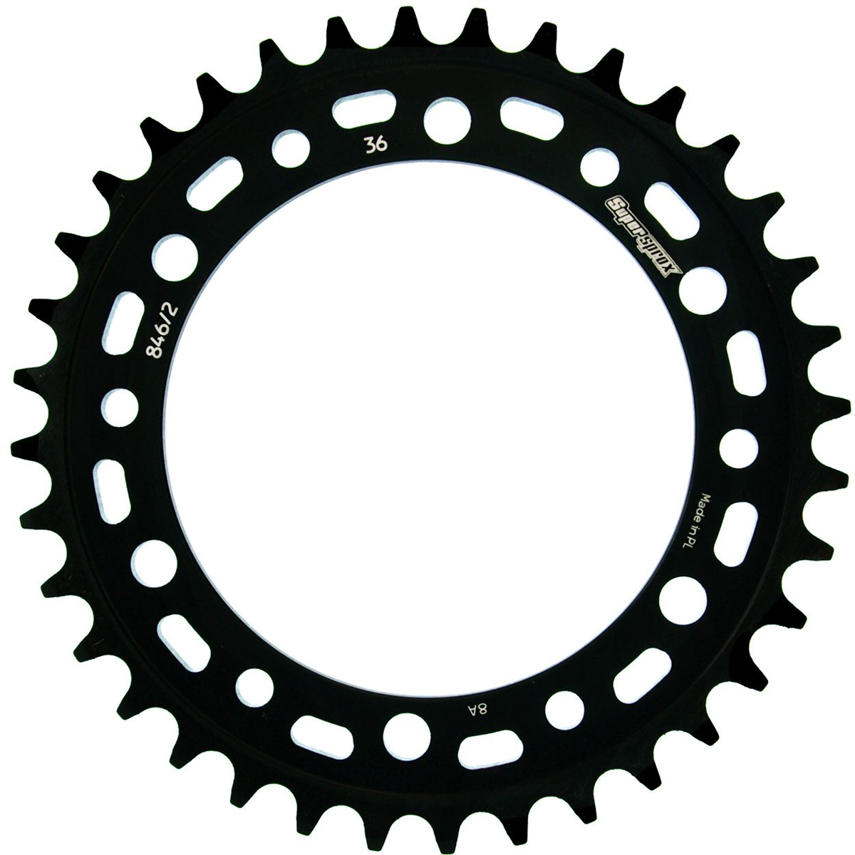 Supersprox - wyścigowe zębatki stalowe. Rozwijane na torze wyścigowym aby zapewnić wytrzymałość i wysokie osiągi. Zaprojektowane w systemie CAD i cięte CNC-laser aby zapewnić idealny montaż na kole. Wykonane ze stali SC-45 zgodnie z wysokimi normami Supersprox, pokryte unikalnym antykorozyjnym podwójnym ocynkiem (powłoka o nazwie 2XZINK) i wykończone na czarno. Wytrzymają 3 razy dłużej niż jakakolwiek aluminiowa zębatka. Jedne z najlżejszych zębatek stalowych na rynku. Dbałość o detale dotyczy także wyglądu.