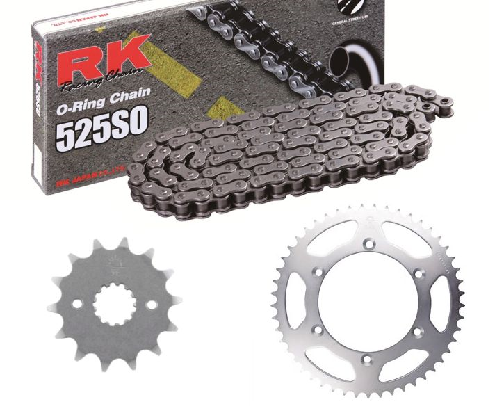 Poniższy napęd zawiera zębatki marki JT wytwarzane z japońskiej stali wysokowęglowej oraz produkowany w Japonii łańcuch marki RK powstałej w 1951 roku. Łańcuchy te są używane na pierwszy montaż przez producentów motocykli: HONDA, KAWASAKI, SUZUKI, YAMAHA. RK oferuje najlepsze łańcuchy O-ringowe w branży. Wykonane są one z wysoko węglowej stali stopowej o bardzo wysokiej wytrzymałości i trwałości. W modelu SO są wykorzystane pierścienie uszczelniające o przekroju O w celu uszczelniania ogniw, co zapewnia prawidłową i płynną pracę oraz wydłuża żywotność bez utraty mocy. Łańcuch 525SO (O-ring) może być stosowany we motocyklach szosowych do pojemności 800 ccm i off-roadowych do pojemności 600 ccm.
