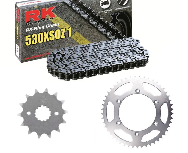 Łańcuchy RK typu RX oferują bardzo wysoką wytrzymałość na rozciąganie i skręcanie przy bardzo niskim współczynniku tarcia. Wszystkie łańcuchy typu RX-ring dzięki wykorzystaniu wysokogatunkowej stali gwarantują nawet 7-krotnie większą odporność na zużycie niż standardowe łańcuchy O-ringowe. Ponadto uszczelnienie typu RX dzięki dwóm sekcjom smarowym i punktom styku gwarantuje dużo lepsze zabezpieczenie ogniw przed korozją i zużyciem niż standardowe uszczelnienie O-ringowe. Łańcuch 530XSO (RX-ring) może być stosowany w motocyklach szosowych o pojemności do 1000 ccm i off-roadowych o pojemności do 750 ccm.