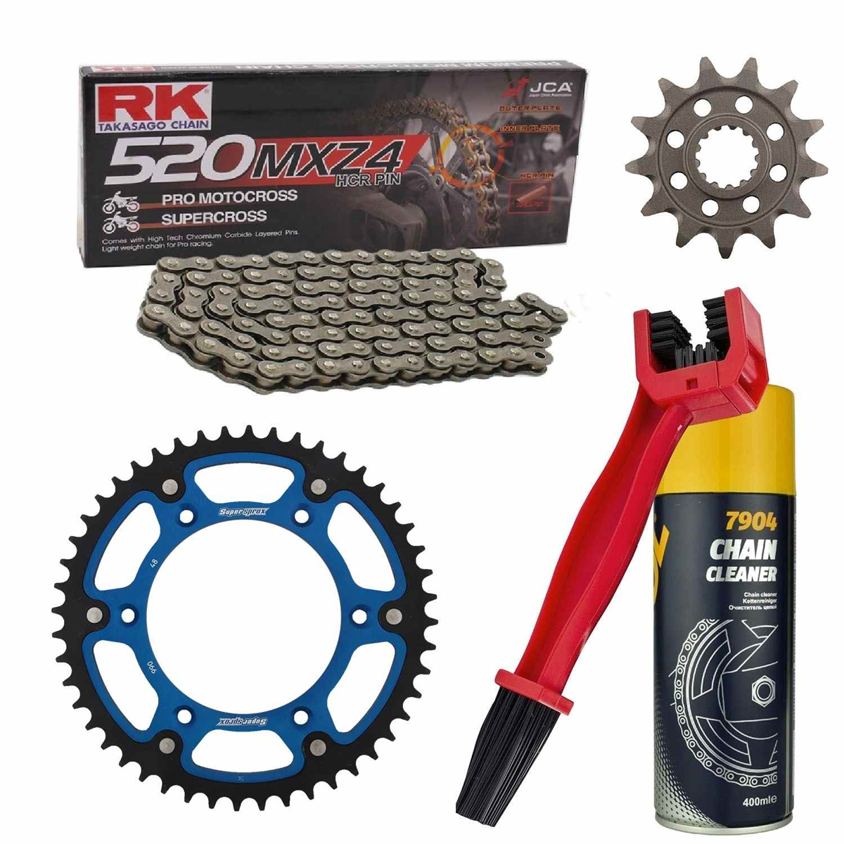łańcuch: RK 520 MXZ4 HEAVY DUTY PREMIUM MOTOCROSS RACING (bezoringowy hiper wzmocniony, kolor metaliczny) 114 ogniw + spinka