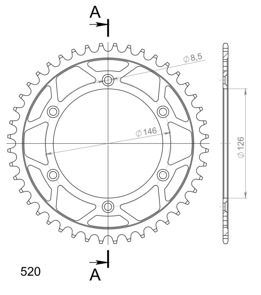 Poniższy napęd zawiera tylną zębatkę SUPERSPROX - RFE - wyścigową zębatkę stalową.