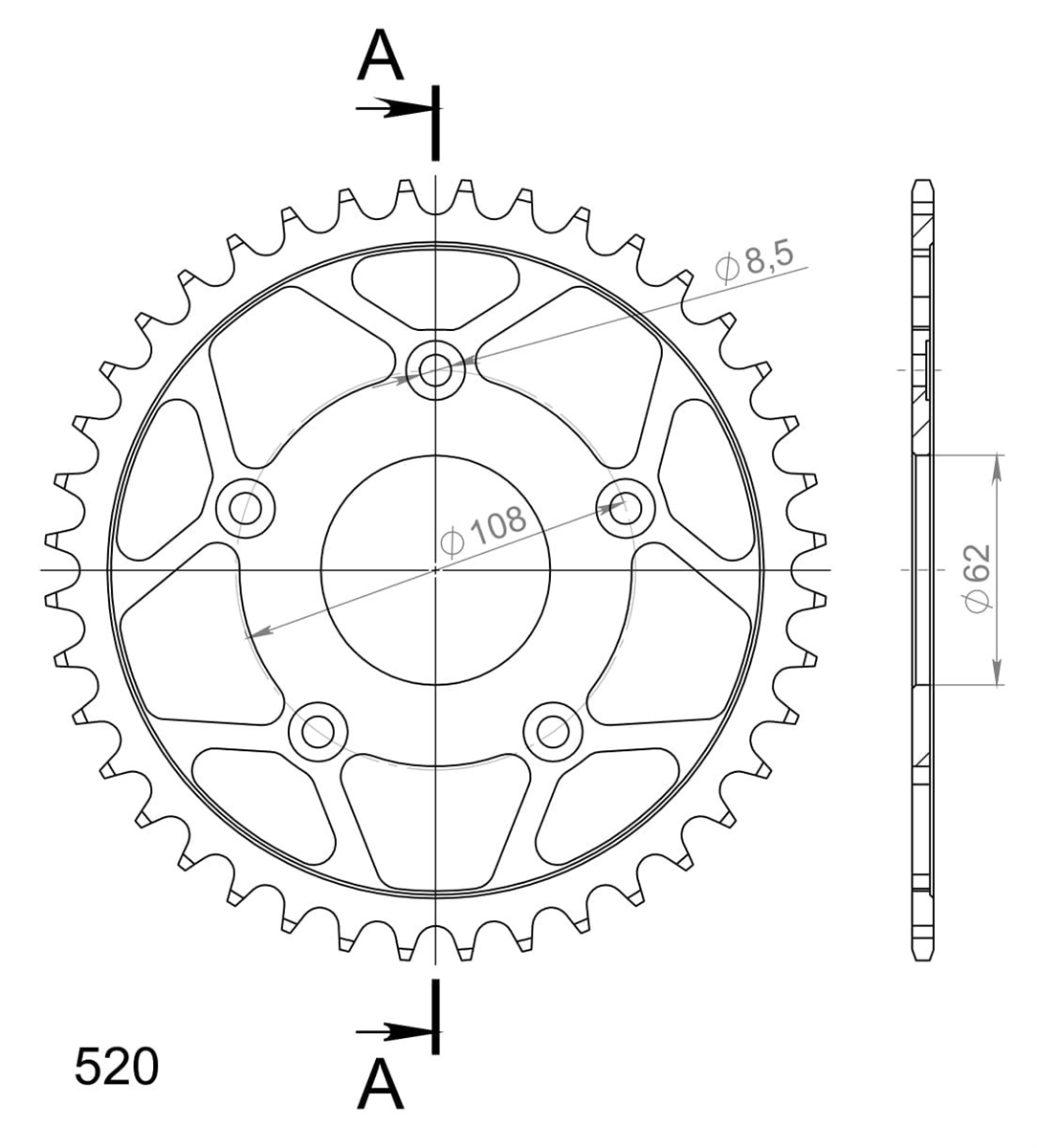 Poniższy napęd zawiera tylną zębatkę SUPERSPROX - RFE - wyścigową zębatkę stalową.