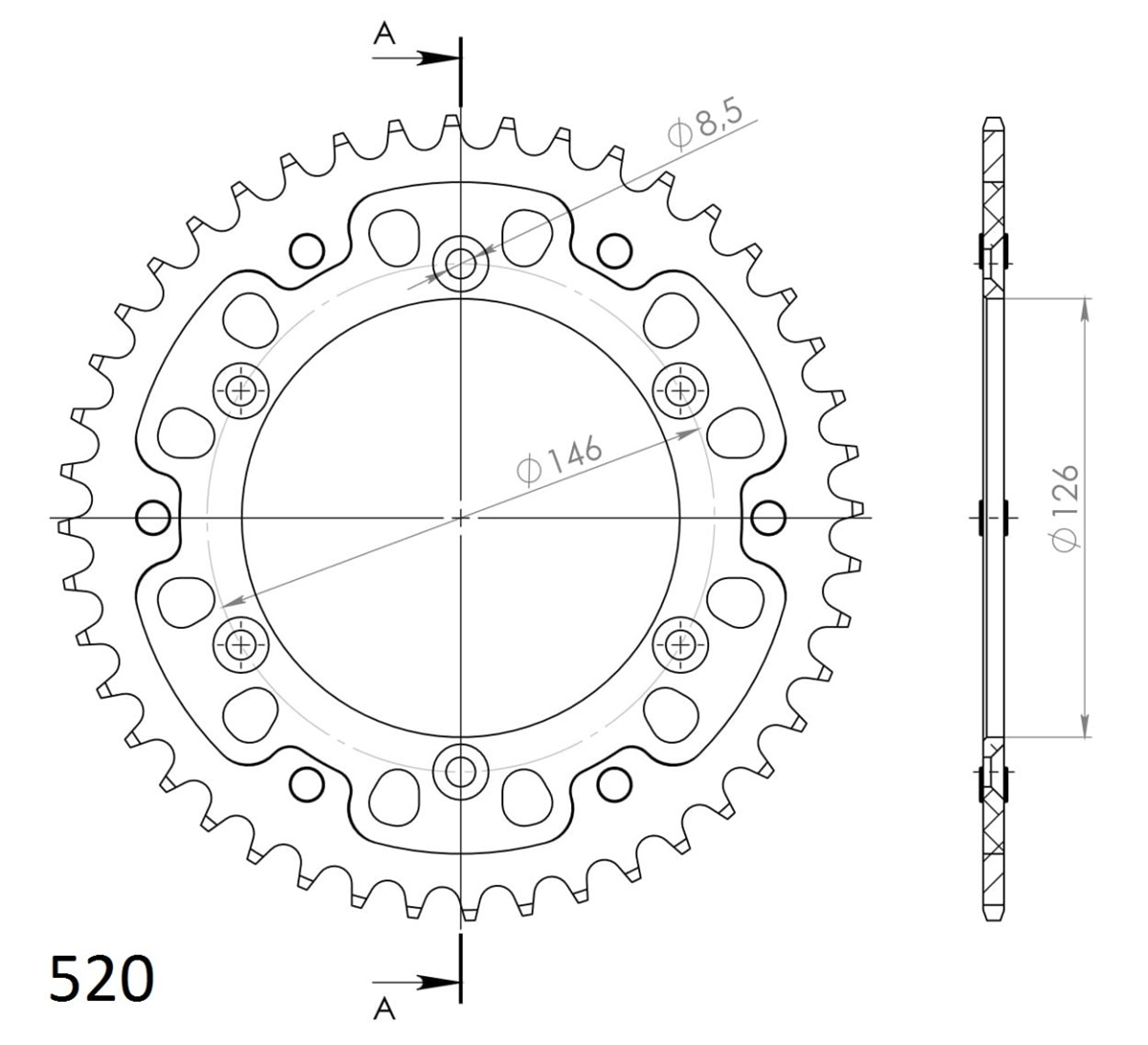Środek zębatki wykonany jest z lekkiego i wytrzymałego aluminum lotniczego, natomiast korona zębów wykonana jest z niklowanej stali węglowej.